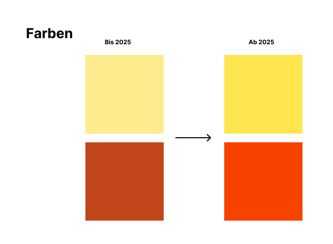 Die bisherigen Farbtöne wurden modernisiert und neu definiert – heller, satter und lebendiger. Ziel war es, unserem Auftritt mehr Strahlkraft und positive Energie zu verleihen.